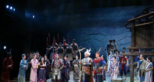 中新网南宁7月5日电 (记者林浩)7月5日晚,广西原创民族歌剧《大汉海路》在广西艺术学院展演,演出首次将歌剧的四幕情节全部展演,获得观众阵阵掌声。